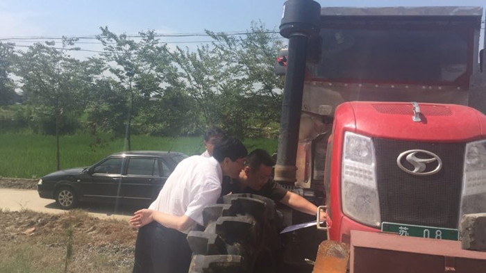 7月17日,江苏省金湖县农机局、财政局组织相关科室人员顶着烈日对今年第一批农机购置补贴机具进行核查。